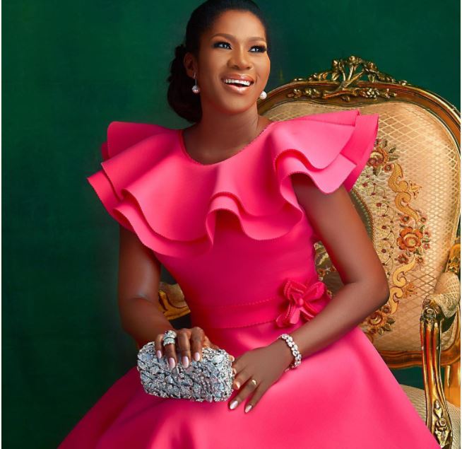 The beautiful woman currently based abroad with her husband walked majestically in her exotic pink gown.